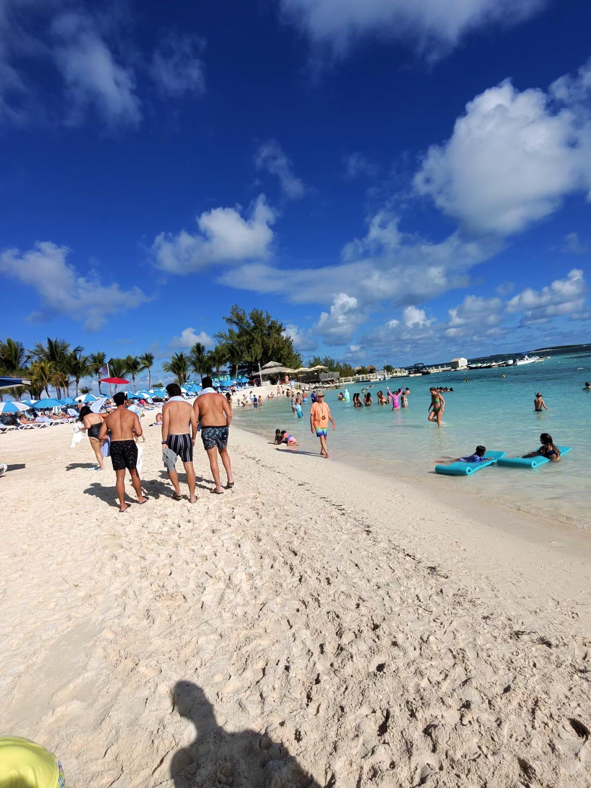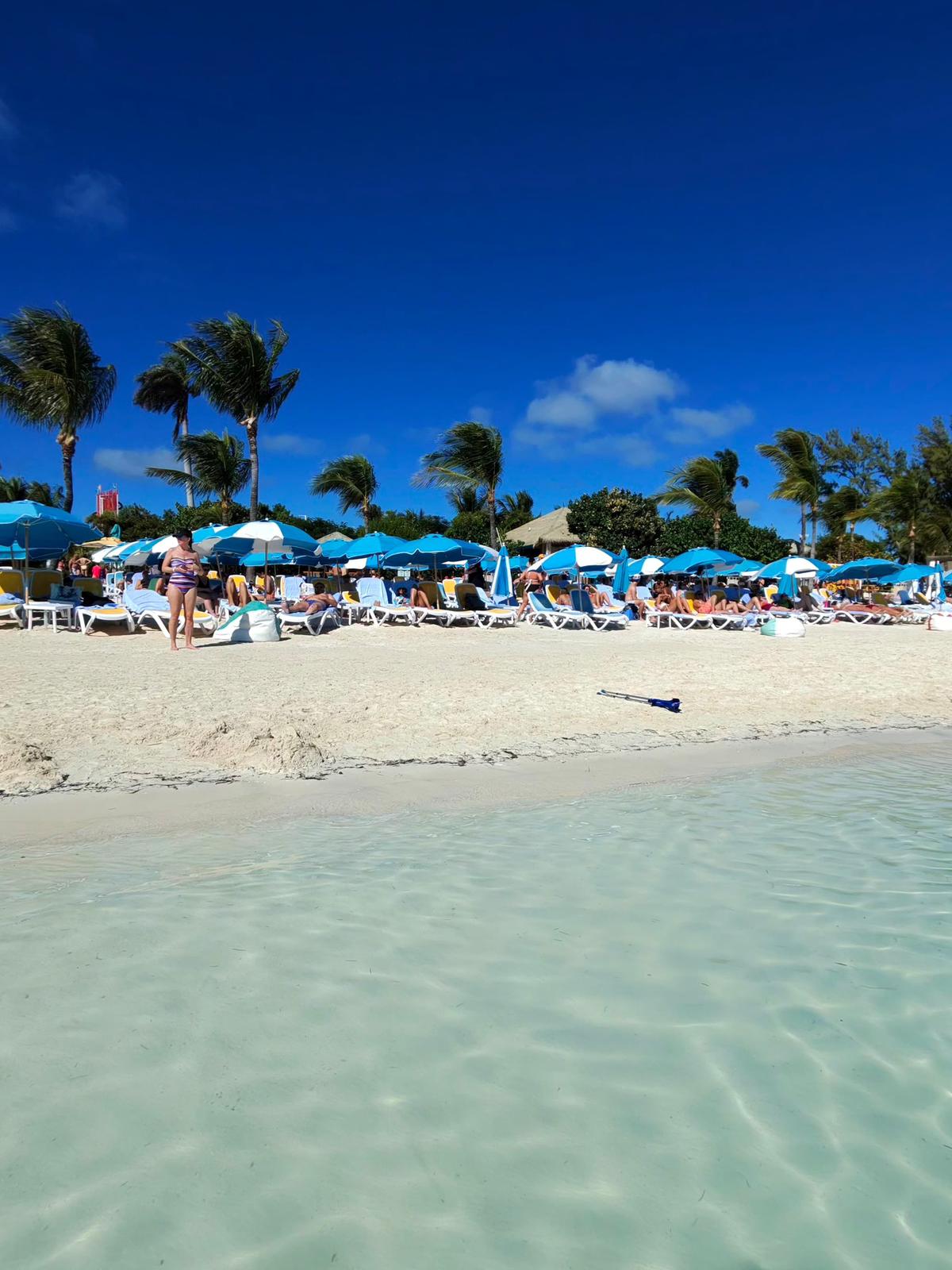 Sosirea în CocoCay a fost întâmpinată de lumina caldă a dimineții și de silueta palmierilor care conturau imaginea unui adevărat paradis tropical. Turiștii noștri au coborât pe insulă și au descoperit rapid un spațiu creat special pentru bucuria deplină a vacanței, unde fiecare zonă oferă o experiență diferită. Unii au ales plajele liniștite și șezlongurile așezate aproape de apă, alții s-au îndreptat spre atracțiile parcului acvatic sau spre sporturile nautice, lăsându-se purtați de energia insulei. Între băi în ocean, cocktailuri savurate la umbra palmierilor și priveliști nesfârșite de albastru, CocoCay a devenit pentru mulți punctul culminant al întregii croaziere.