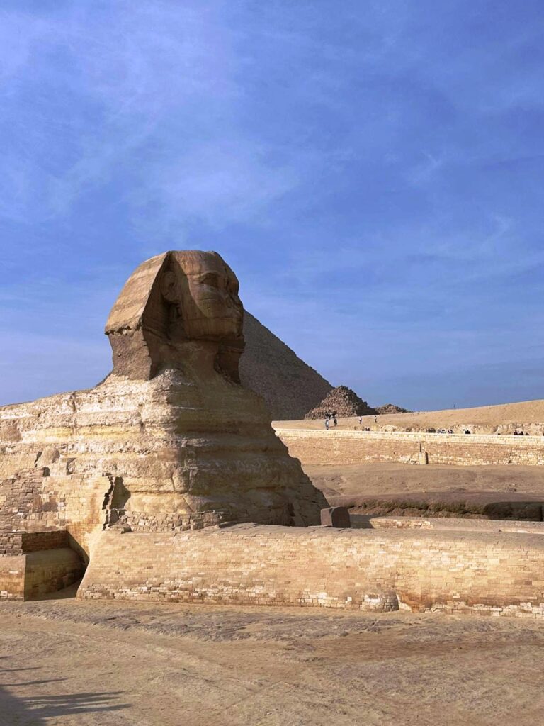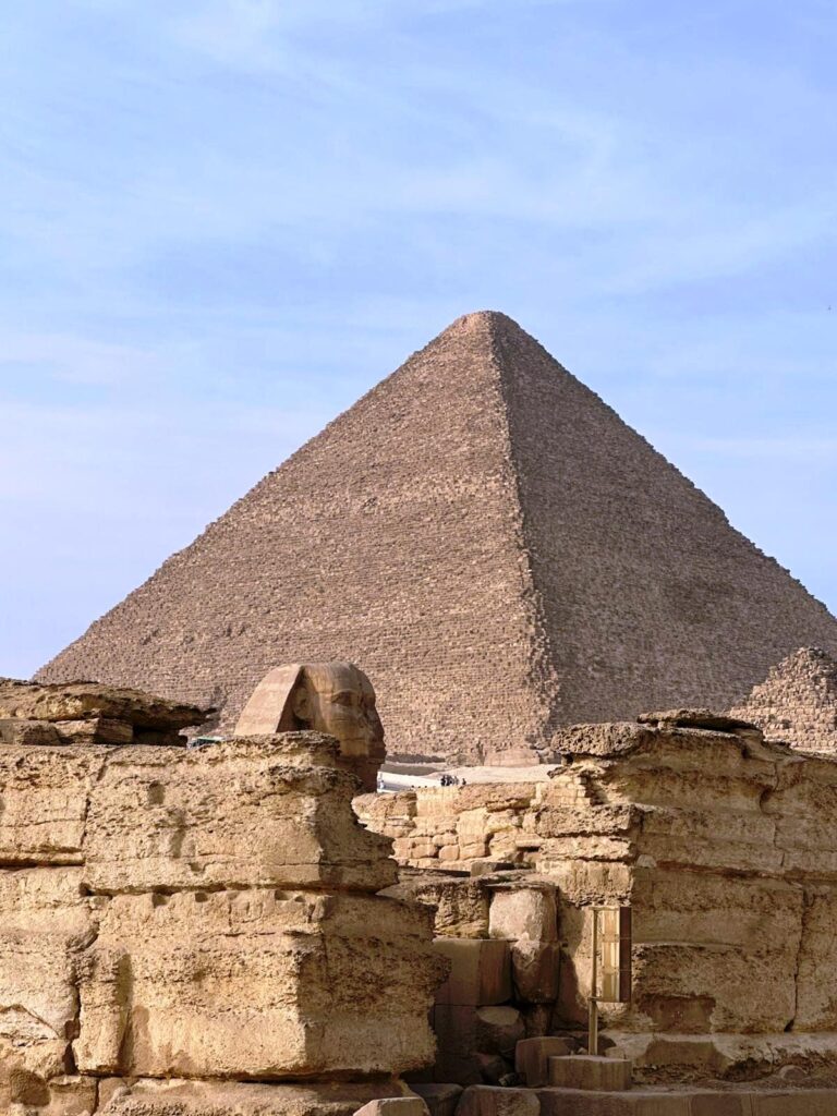 Alături de piramidele lui Kefren și Mykerinos, formează un ansamblu monumental ce continuă să stârnească fascinație și întrebări până astăzi. Privindu-le, nu poți să nu te întrebi cum au reușit oamenii acelor vremuri să ridice asemenea structuri perfecte. La poalele lor, enigmaticul Sfinx, cu trup de leu și chip uman, veghează de milenii platoul de la Giza, simbolizând puterea, protecția și misterul faraonilor. Împreună, aceste monumente oferă vizitatorilor o întâlnire directă cu măreția lumii antice.